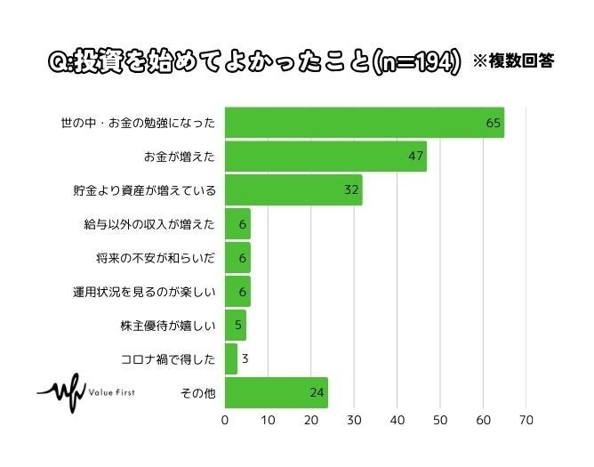 世の中の動きに敏感になり、色々なことにアンテナを貼るようになった。また、投資がライフプランについて考えるきっかけにもなった。