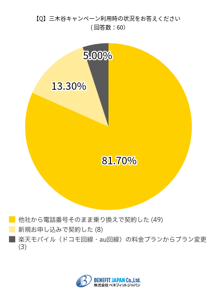 当メディアの調査によると、楽天モバイルの三木谷キャンペーンは他社から乗り換えで利用しているユーザーが81.70%でした。