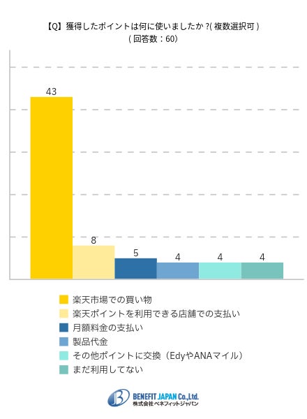 獲得したポイントは「楽天市場での買い物」に利用した人が45.30%が多い結果となりました。