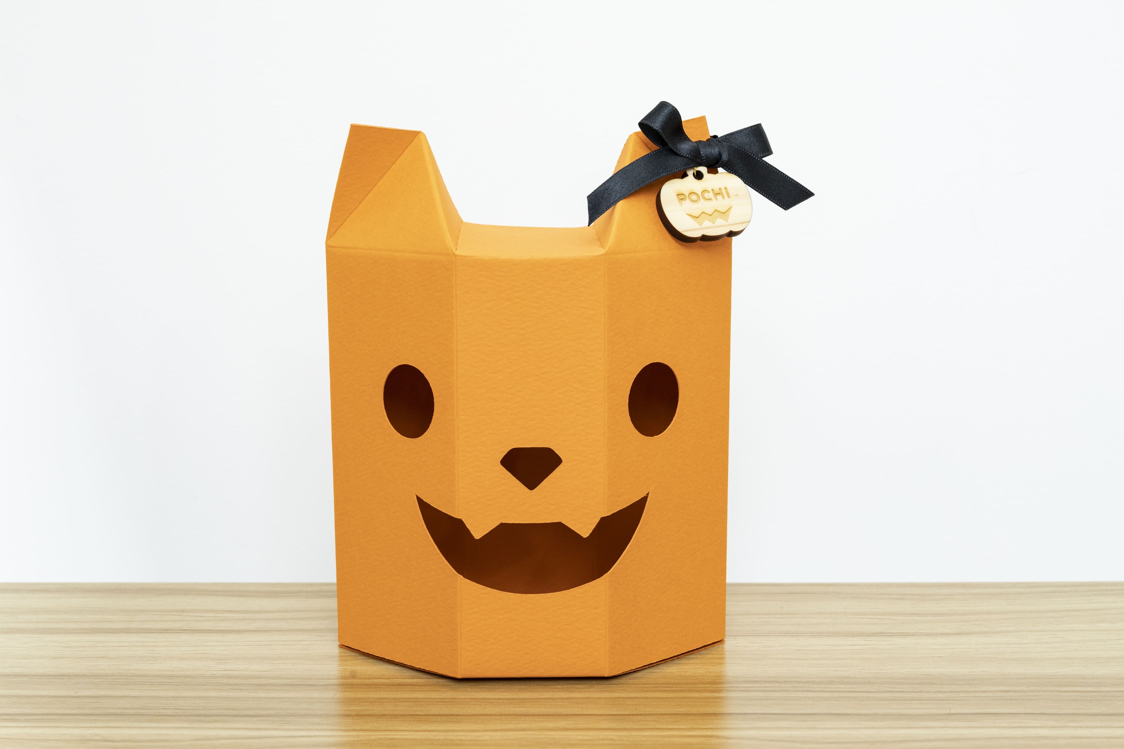 ジャックオランタンをイメージしたワンちゃん型オリジナルボックスに入れてお届けします。ワンちゃんと一緒に写真を撮りたくなる可愛らしいパッケージです。