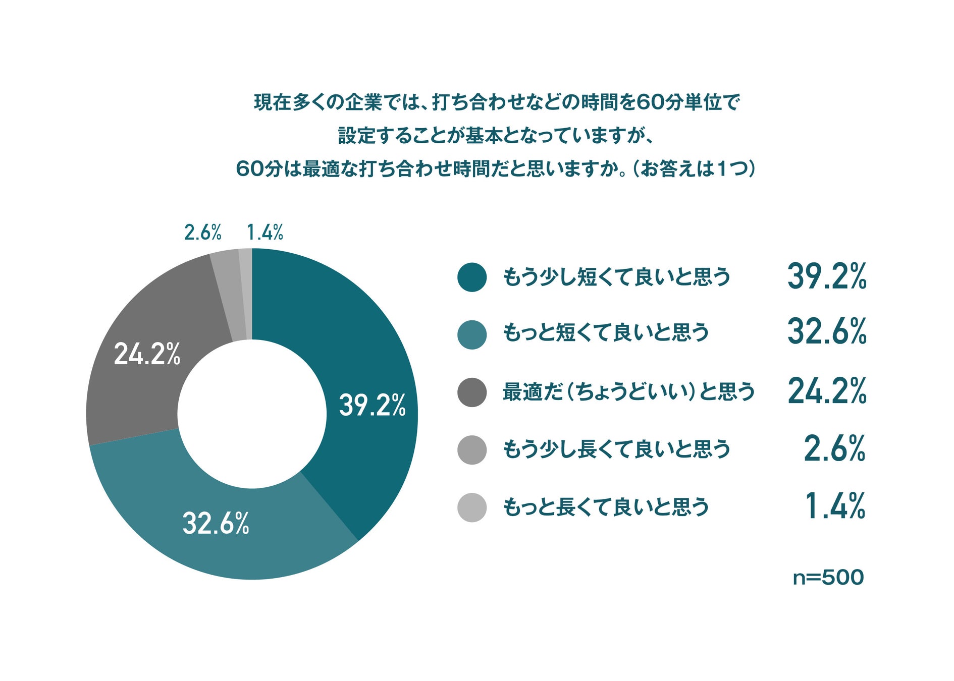 - 会社員の7割以上(71.8%)は、60分単位の会議を「短縮したい」と思っている。