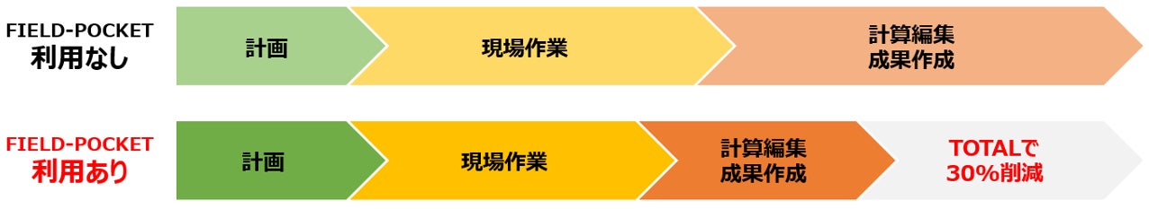 FIELD-POCKETの活用で、観測業務の効率化と、内業の後工程が省力化できます。