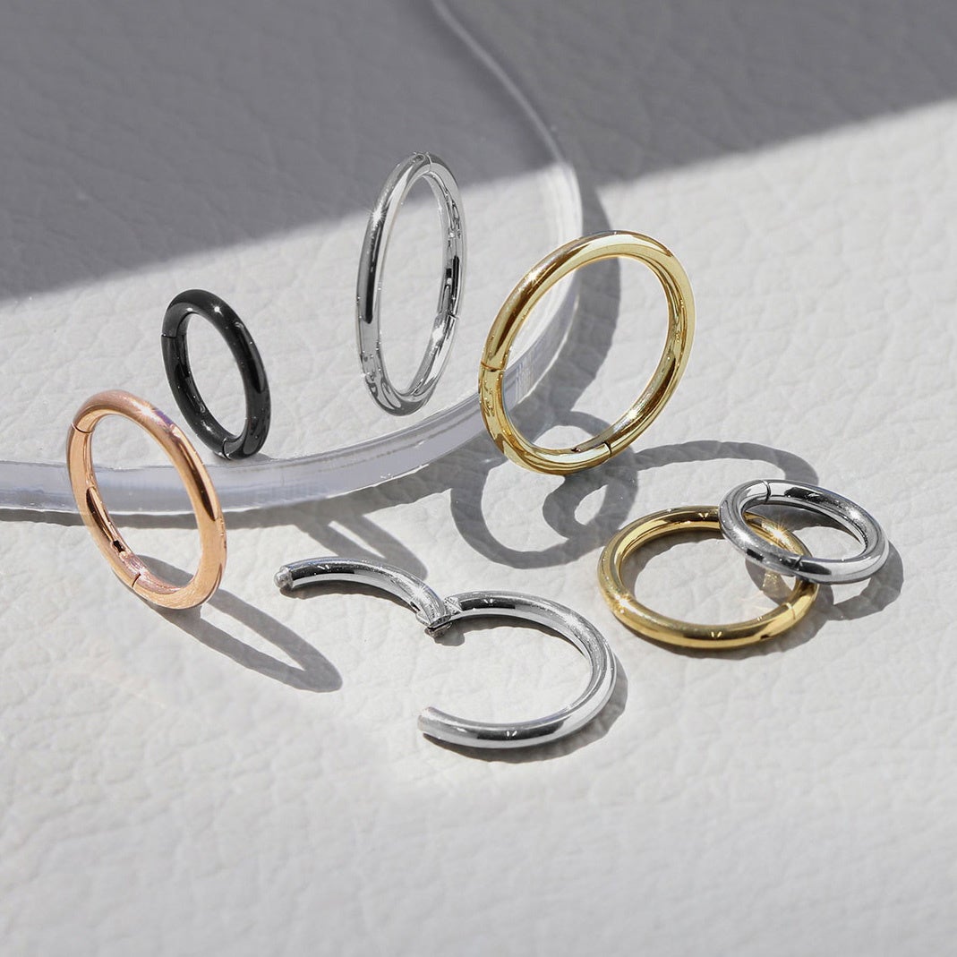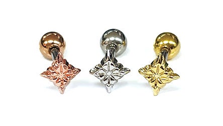 カラーはシルバー、ゴールド、ピンクゴールド、ブラックの4色からお好きなカラーをお選びいただけます。内径サイズやゲージもお選びいただけますので、ぜひお好みの仕様をお試しください!