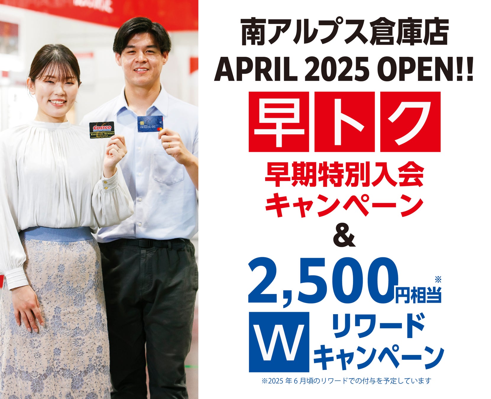 ・リワードの付与は南アルプス倉庫店オープンから約2か月後(2025年6月中)を予定しています。