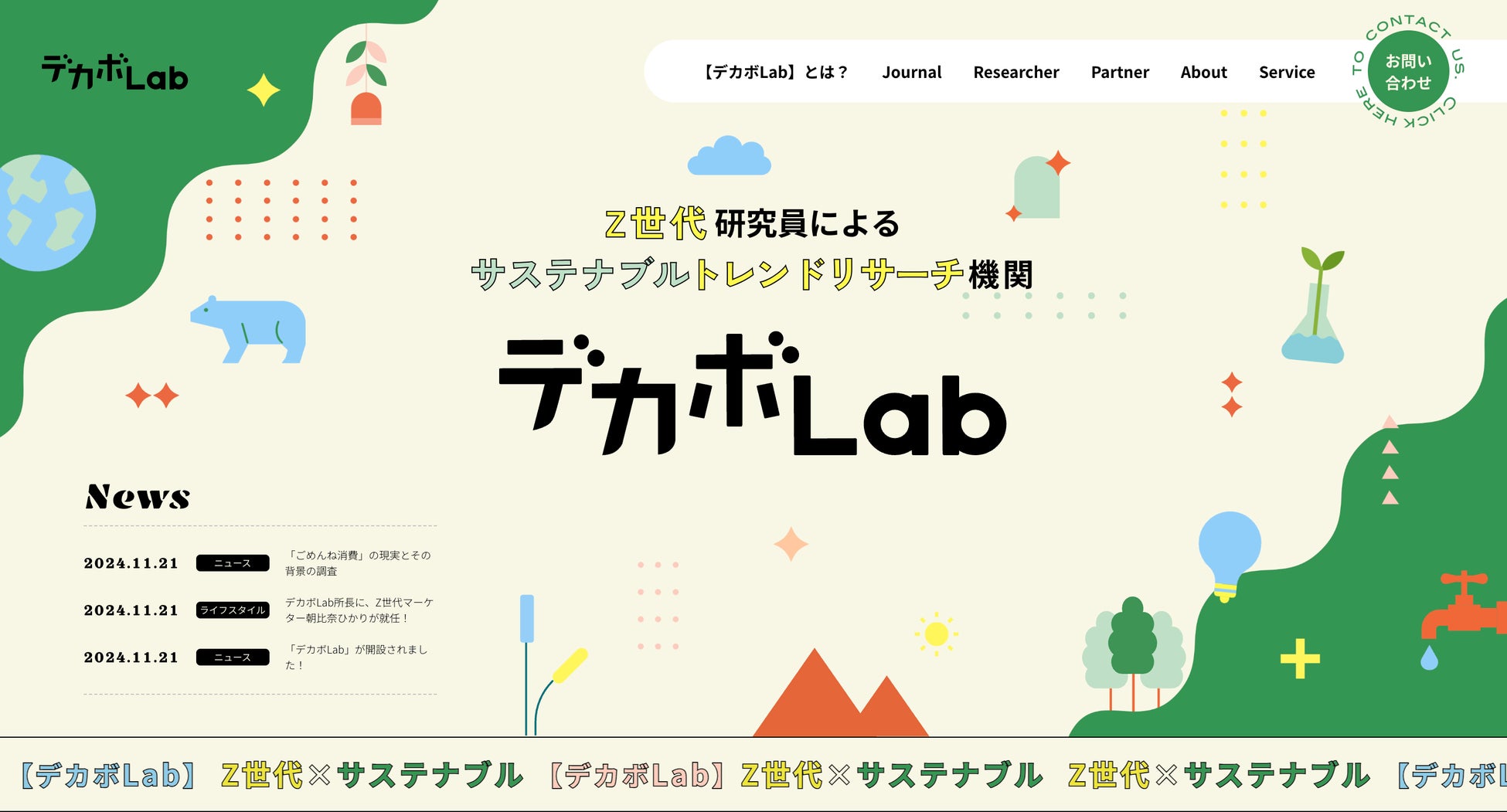 Z世代に特化した企画・マーケティング・デザインを提供する株式会社seamint.(本社:東京都江東区、代表取締役:戎 光璃)は、Z世代にサステナブルな情報発信をする『デカボLab』のサービスサイトを制作したことをお知らせいたします。