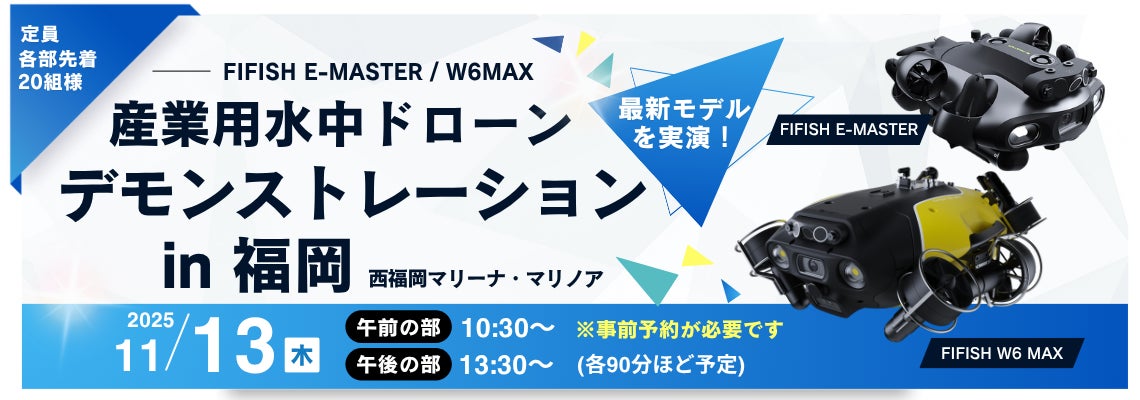株式会社ジュンテクノサービス(本社:埼玉県川越市、代表取締役:引野 潤)は、ビジオテックス株式会社と共同で、2025年11月13日(木)産業用水中ドローン「FIFISH」シリーズの最新機種『FIFISH E-MASTER』および『FIFISH W6MAX』のデモンストレーション会を開催いたします。