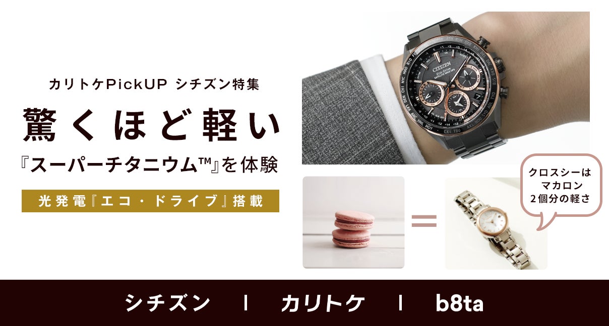 時計のサブスク「カリトケ」がシチズン時計とタイアップ 超軽量のシチズン独自素材『スーパーチタニウム™』を採用したシチズンブランドの腕時計を体験型ストアb8ta Tokyo – Yurakuchoに出品