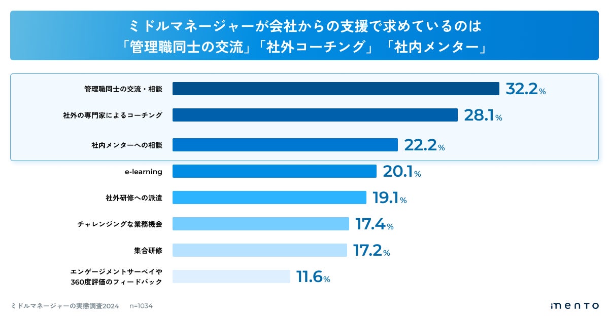 ミドルマネージャーは会社からの支援として「管理職同士の交流」「コーチング」を求めている