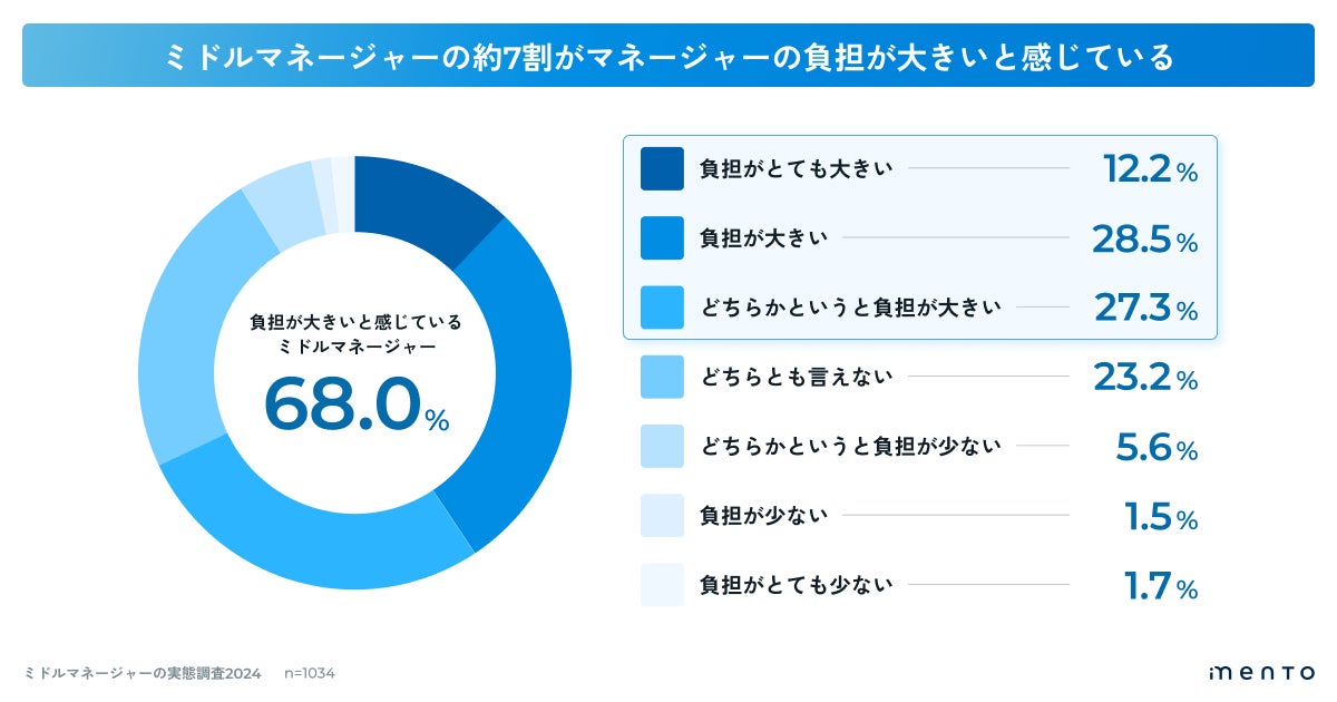 ミドルマネージャーの約7割がマネジメントの負担が大きいと感じている