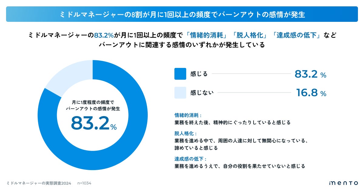 ミドルマネージャーの約8割が月に1回以上の頻度でバーンアウトに関連する感情が発生