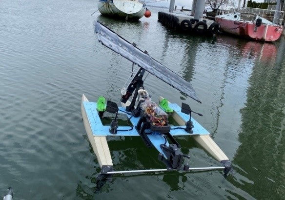 また空中翼(船の上)と水中翼(海中)が連動して動作することで帆にかかる力で船体が転倒することを防ぐことができ、空中翼と水中翼を組み合わせた技術として特許申請しています。技術開発は海事協会と太陽工業により、2021年3月から開始しました。回転型の帆による帆走と水中翼と連動させ転倒を防ぐ実験を行い本年5月に特許申請しました。 8月には発電データの取得やGPS指定ポイントを自動で回る実験、風に合わせて速度を出す実験など、より発電効率を向上させるための実証実験を開始します。