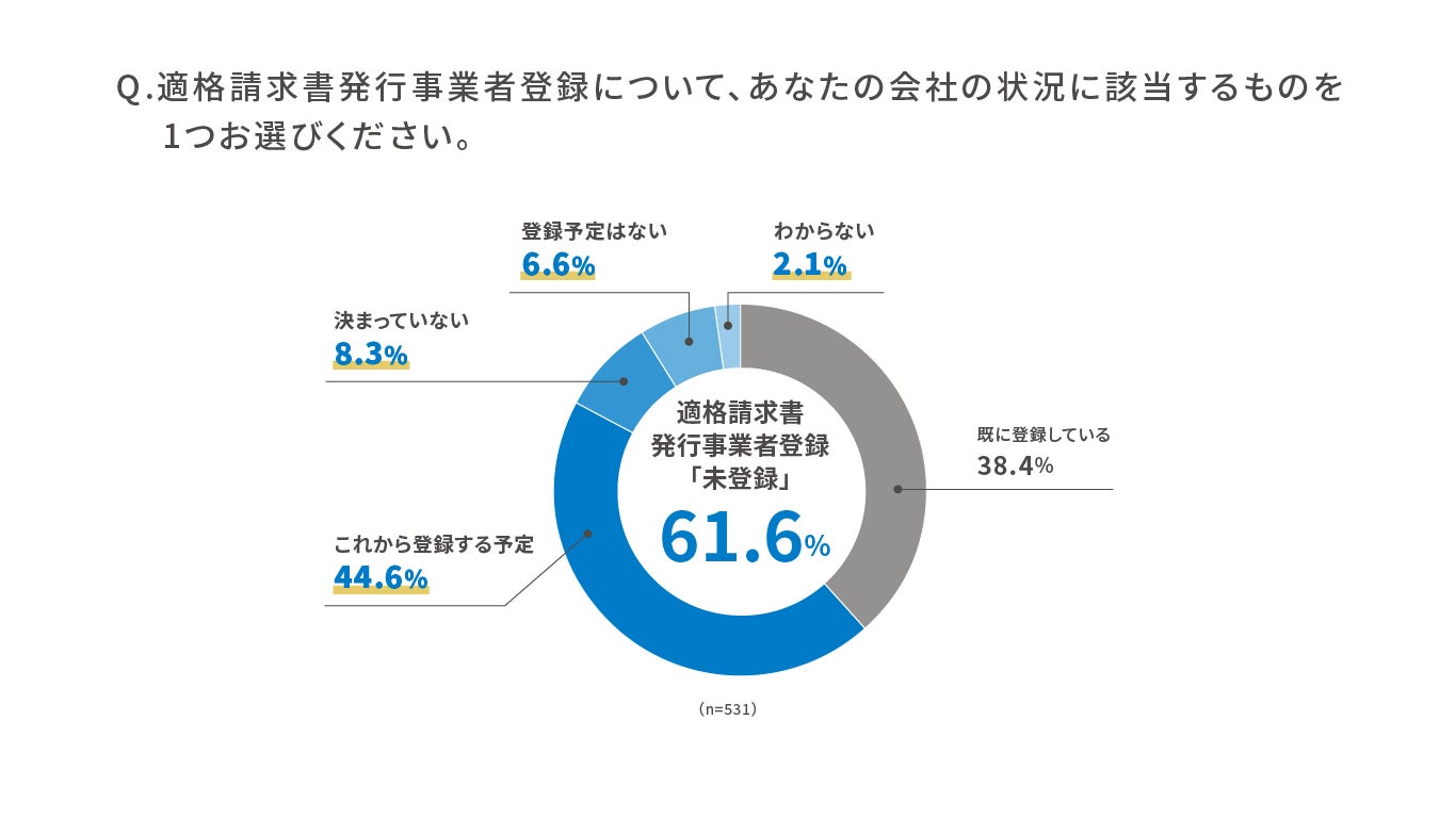 - 適格請求書発行事業者登録について6割以上が「未登録」という結果に