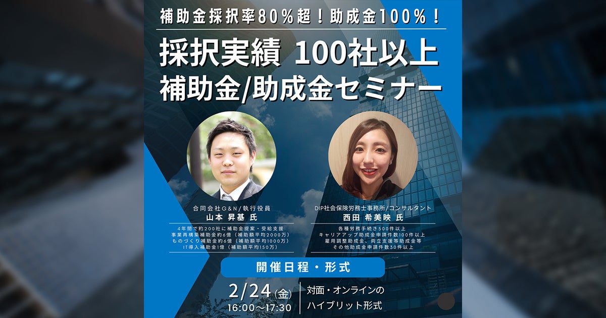 採択実績100社(採択率80%以上・補助金額平均1500万円)以上の実績を持つG&Nと共同開催