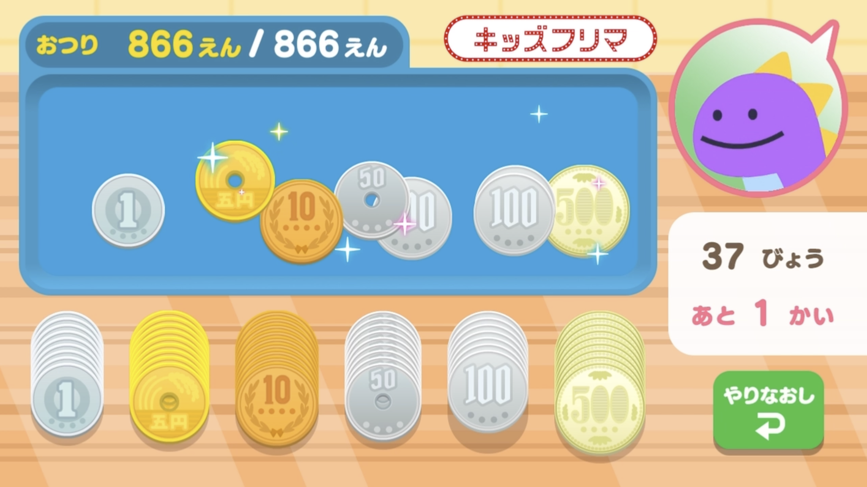 アプリ内店舗では「フリマでおかいもの」、「おつりわたし」、「しゅうしけいさん」の3種のゲームをお楽しみいただけます。