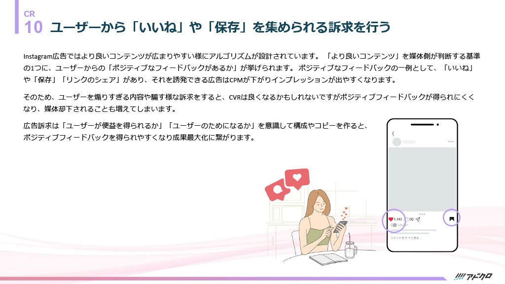 ユーザーから「いいね」や「保存」を集められる訴求を行う
