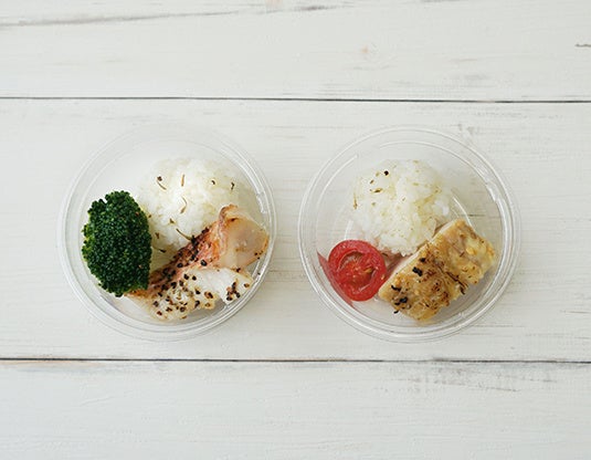 ミニおにぎり(クレイジーソルト)/白身魚のソテー(クレイジーレモン)/ブロッコリーの和え物(クレイジーペッパー・クレイジー岩塩) ■クレイジーチキンセットミニおにぎり(クレイジーソルト)/ローストチキン(クレイジーガーリック)/ミニトマトのオリーブオイルかけ(クレイジーバジル)