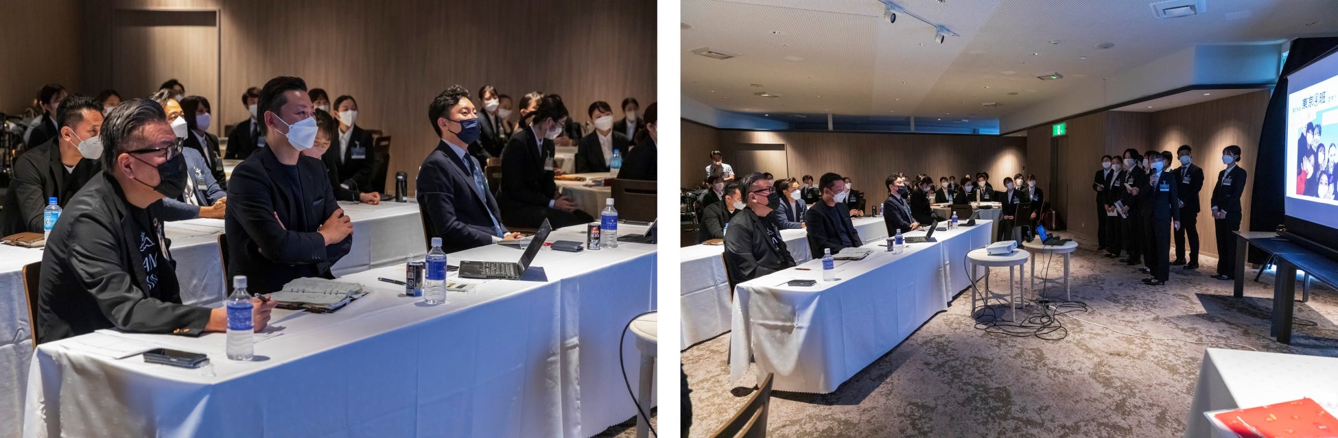 5名の役員がそれぞれの「世界一楽しい仕事」語り、内定者たちに本気の想いを届けました。その後、懇親会では内定者膝を突き合わせて縁を育みました。これから、人事担当は内定者の夢に向き合い、配属面談を実施し、それぞれの「なりたい自分」へ向き合いファーストキャリアへと導いていきます。