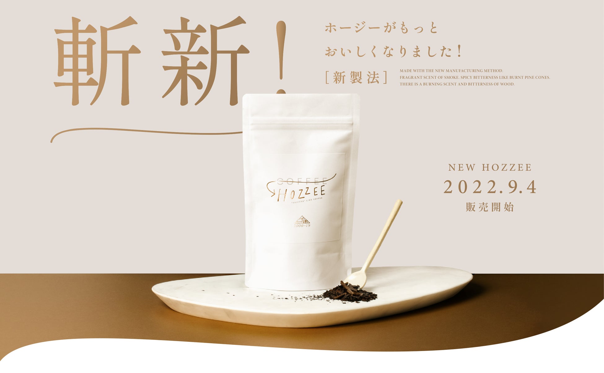 「HOZZEE(ホージー)」は、お茶ブランド「1000-19(せんのいっきゅう)」より2021年7月より販売をスタートした、コーヒーのような第一印象とほうじ茶ならではの余韻を味わってもらうために、苦味や香りにこだわりコーヒーのように飲めるほうじ茶を目指した、ドリップして楽しむ新感覚のほうじ茶です。