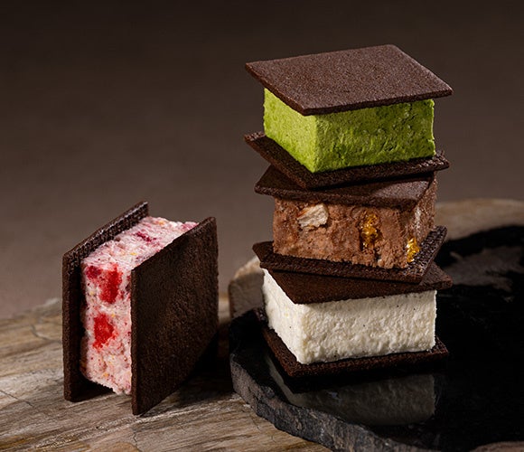 2024年新作フレーバーも登場。素材の組み合わせを楽しめる、口どけの良いショコラクリームを、味わい深い薄焼きのショコラクッキーでサンドした限定スイーツ。