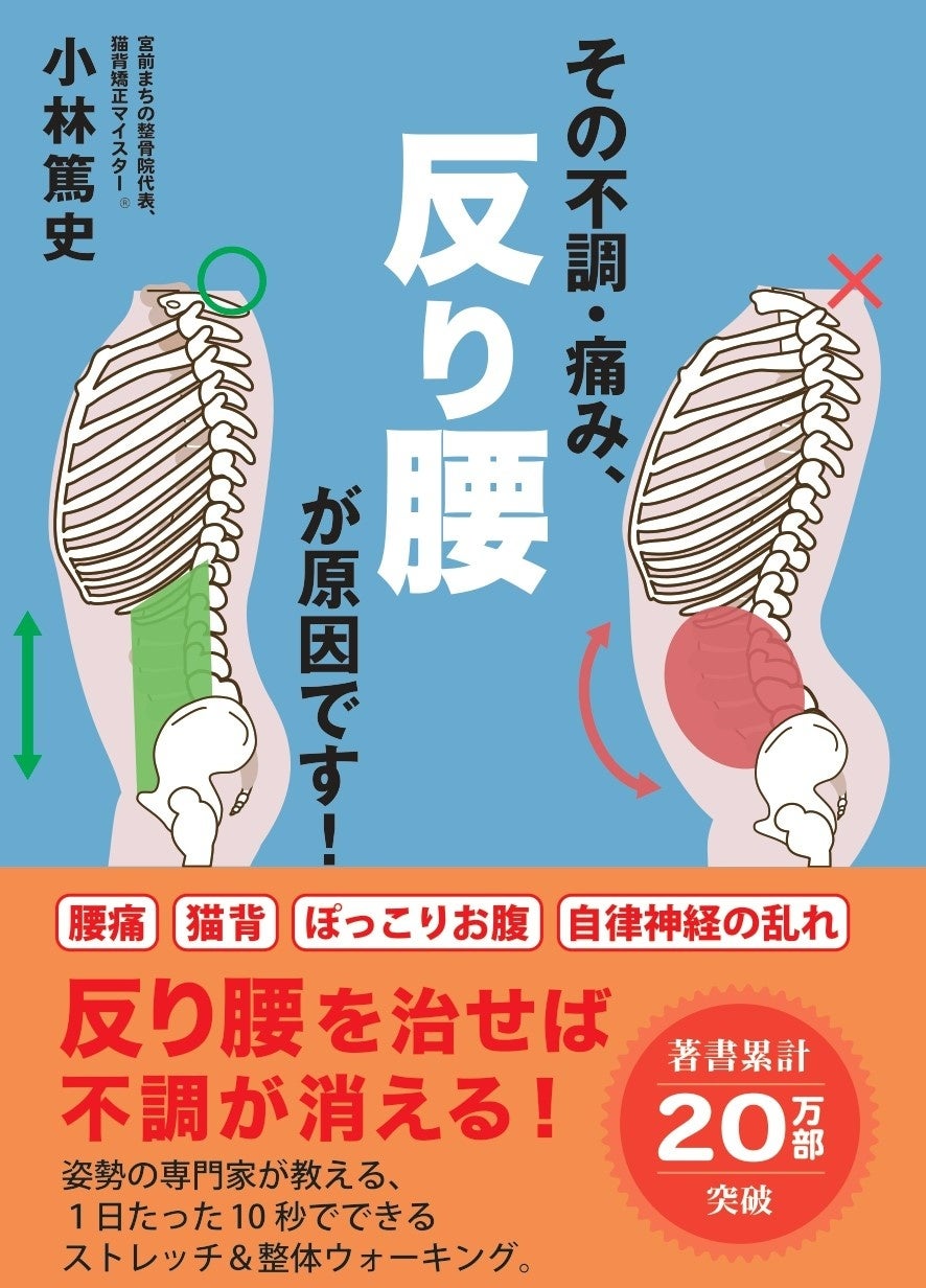 小林篤史(猫背矯正マイスター®︎・宮前まちの整骨院代表)の著書『その不調・痛み、反り腰が原因です!』(産業編集センターより6月14日発売)では、反り腰の真の原因や背骨と骨盤のメカニズムを徹底解説。10秒でできるストレッチ、整体ウォーキングを写真・動画付きで紹介しています。