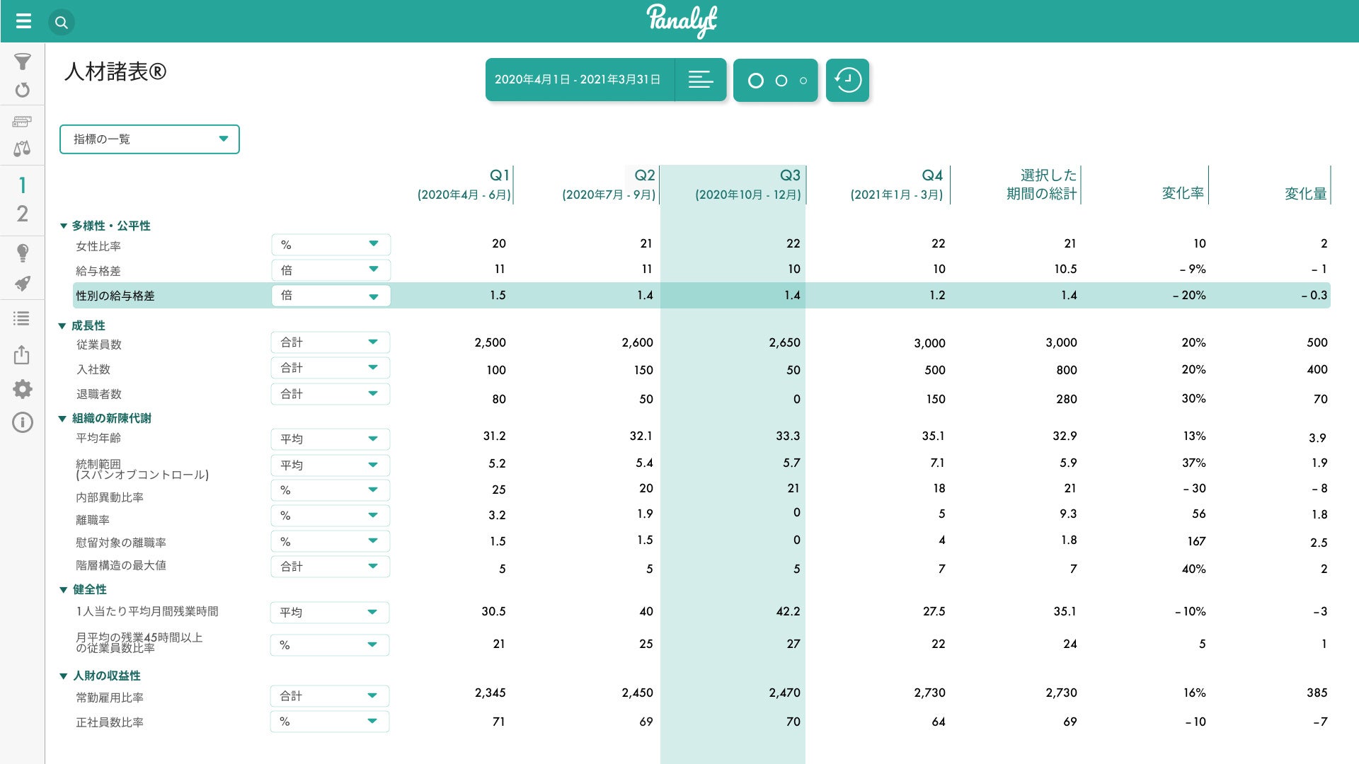 パナリットでは、既存の人事や給与システムに連携するだけで簡単にノーコードで人的資本をあらわす約400種類の KPI(重要指標)可視化・分析するツール「パナリット」を提供。データクレンジングや専任の担当による人事データ分析のサポートなどのサービスも提供しています。