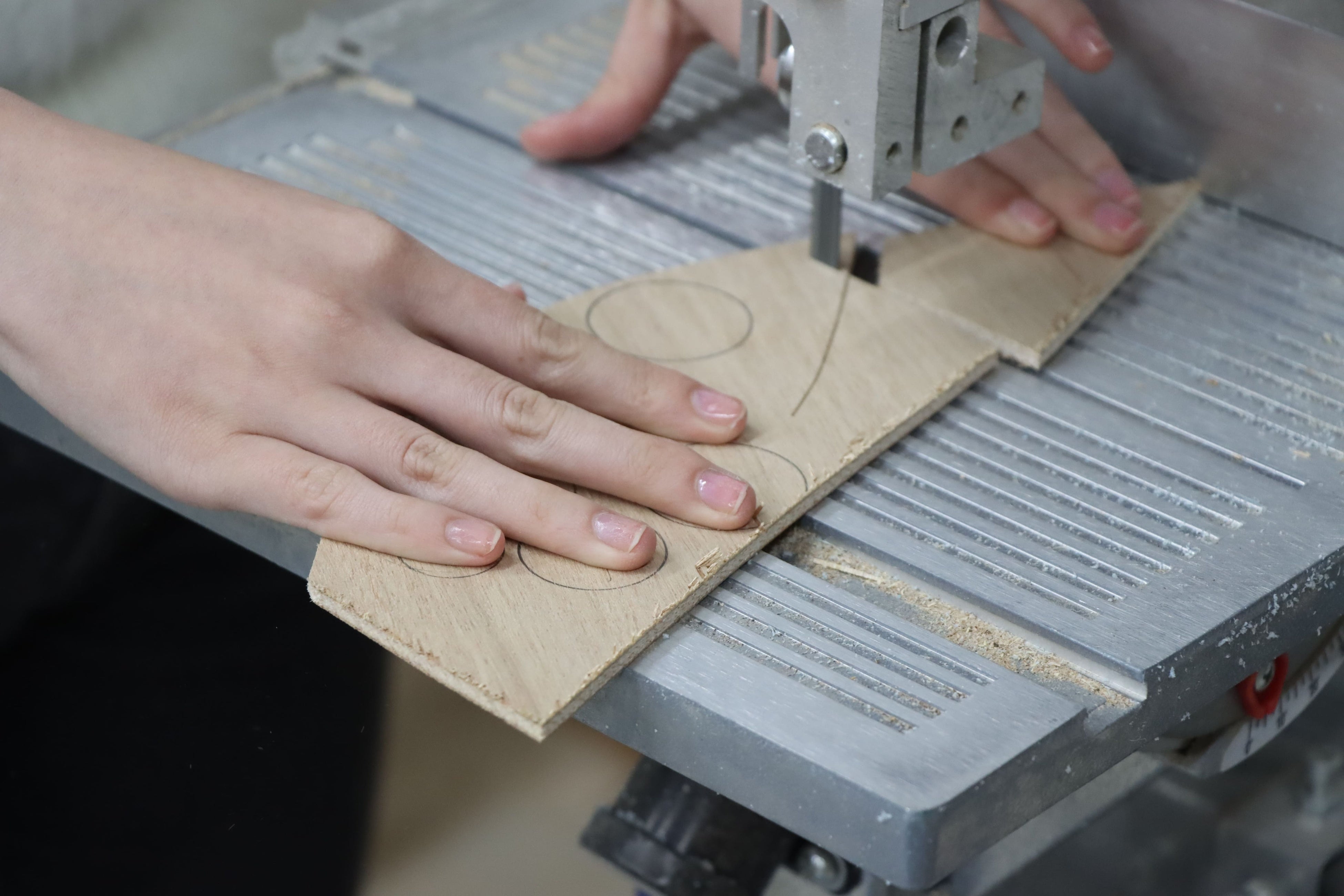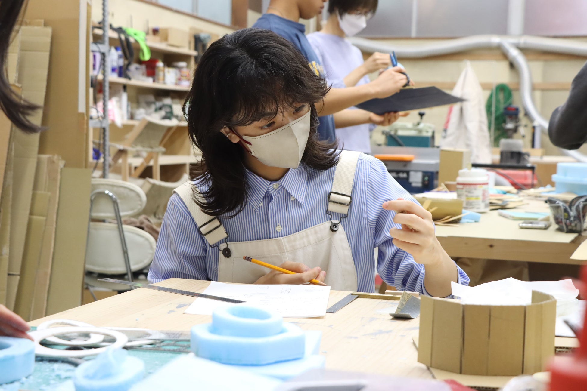 GAKUでは、実際の「本物」の現場で体感したり創作活動に向かうことも大切にしています。プロダクトデザインのクラス「ものがたりとものづくり」では、木材を保管加工するカリモク家具の工場や、岩元広大氏によるデザイナーやアーティストのためのシェア工房に出向いてレクチャーを受けたり、プロトタイプ制作を進めてきました。