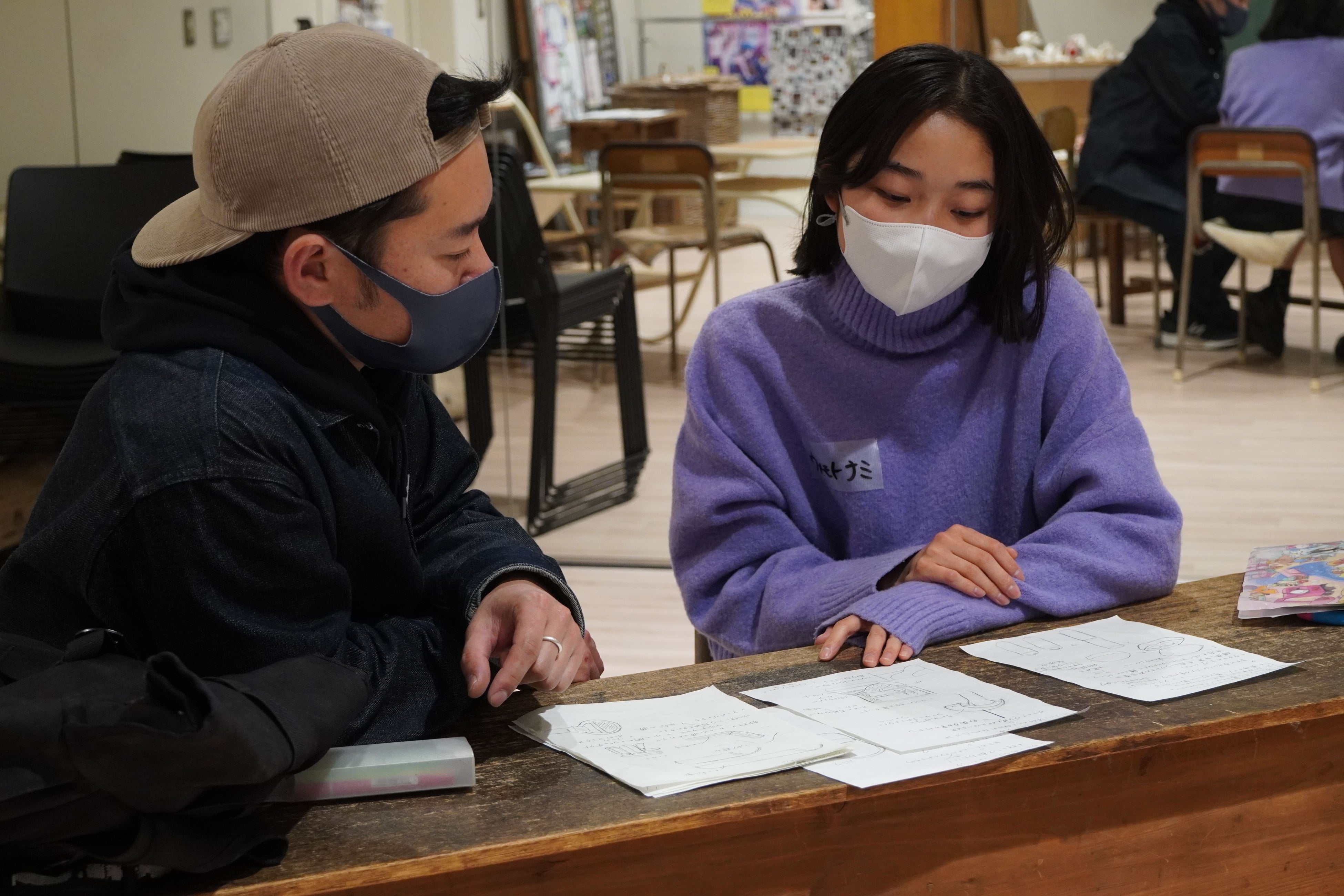 何をつくりたいか。つくるべきか。それを考えていくために、エスキス(デザイン案の下書き)を制作。それぞれの興味関心、選んだ木材の「ものがたり」や特質を手がかりに岩元氏とアイデアを磨いていきます。