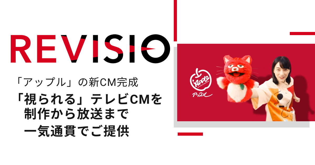 REVISIOは、2022年12月より一部公開が始まった自動車の査定、買取、販売のフランチャイズチェーン、アップルオートネットワーク株式会社(所在地:東京都中央区、代表取締役社長 長塚 秀明、以下アップル)に新CMの制作から放送枠の提供まで一気通貫での提供を行ったことを発表致します。