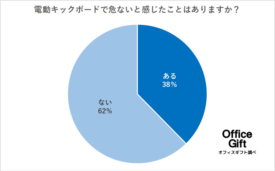 結果としては、電動キックボードで危ない経験をした方は全体の38%にのぼりました。