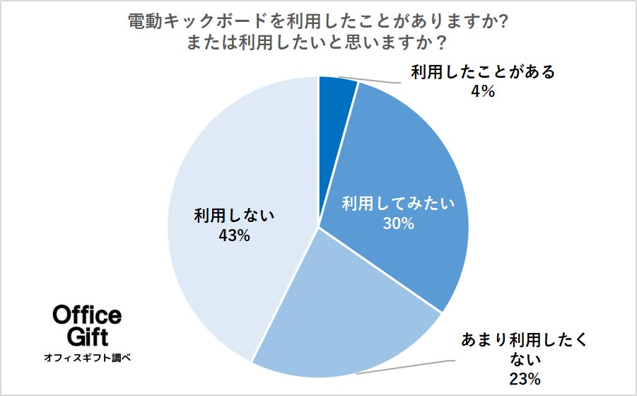 株式会社ウェブギフト(本社:東京都豊島区、代表取締役社長:冨田 仁)が運営する「オフィスギフト(URL:https://www.officegift.jp/)」は、電動キックボードに関するアンケート調査を実施しました。