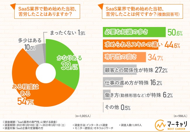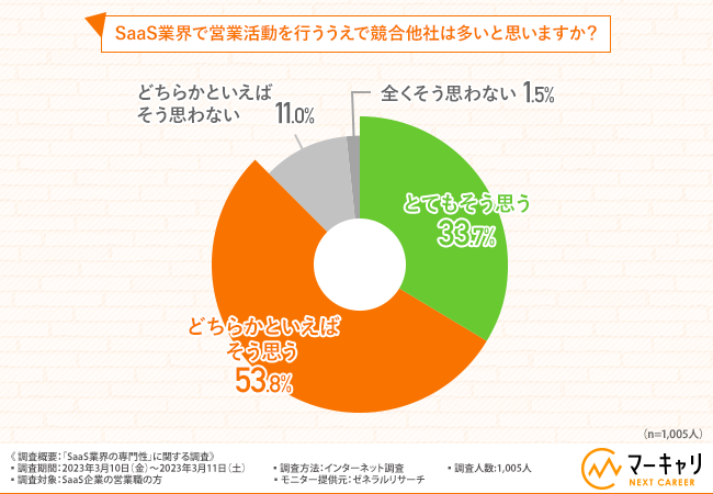 そこで、『マーキャリNEXT CAREER』(https://next.mar-cari.jp/)を運営する株式会社エムエム総研では、SaaS企業の営業職の方1,005名を対象に「SaaS業界の専門性」に関する調査を実施しました。