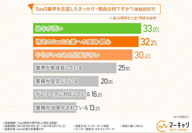 専門的な知識を学ぶのは大変ですが、自己成長を感じながら働くことができ仕事のやりがいがあることがSaaS業界の魅力の一つとも言える結果となりました。