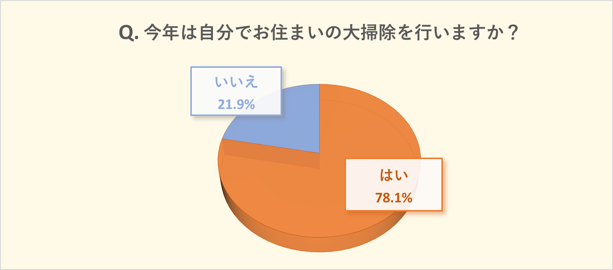 ご自身で自宅の大掃除を行う方は78.1%にのぼりましたが、21.9%もの方は大掃除を行わないという結果となりました。