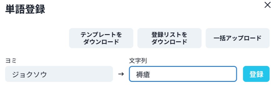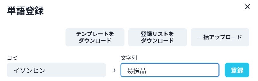 世の中では一般的ではない社内用語や専門用語なども、このように単語登録をすることで文字起こし精度をさらに高めることが可能です。単語を1つずつ登録することはもちろんのこと、CSVによる一括アップロードで登録することも可能です。
