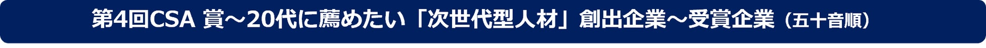 【受賞企業発表】事業の社会性・収益性を兼ね備えた「20代が育つ企業」を称賛!第4回CSA賞〜20代に薦めたい「次世代型⼈材」創出企業〜