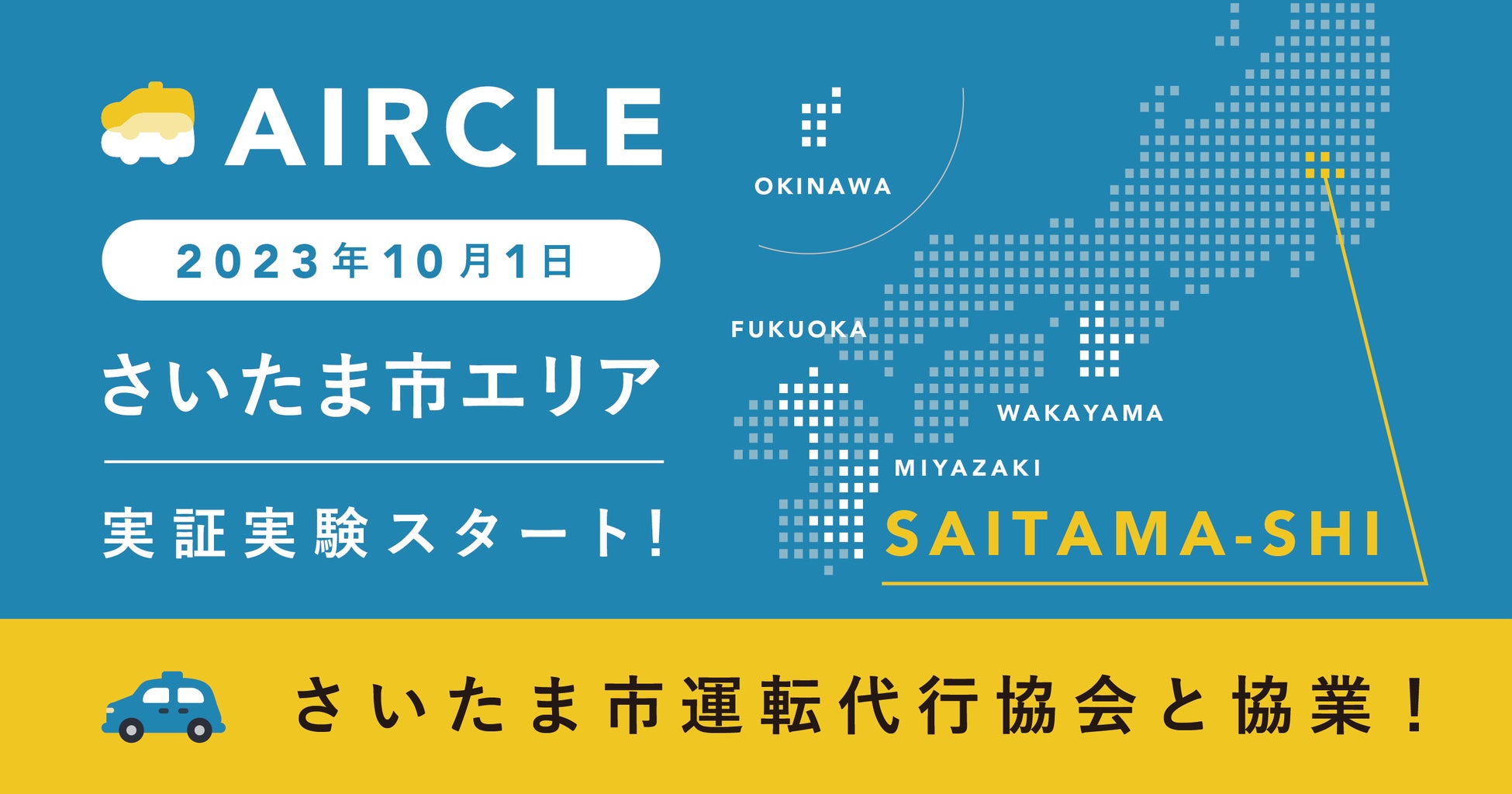 運転代行配車プラットフォーム「AIRCLE(エアクル)」2023年10月1日より埼玉県にて実証実験を開始。11月は配車数を倍増。