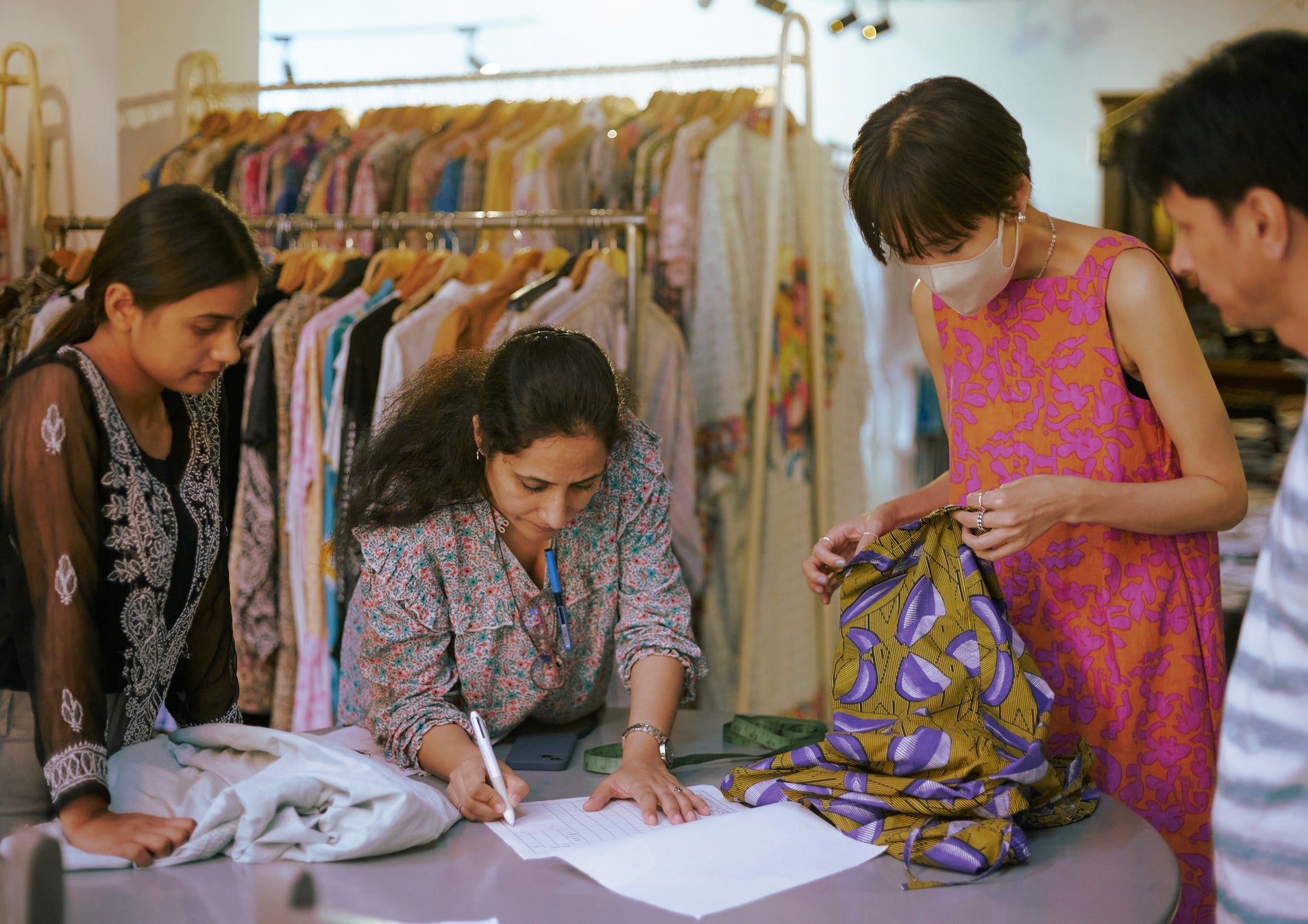 ne Quittez pasは、ブランド設立当初より15年に渡り、生産拠点であるインド現地にて、ものづくりに関わる約300名以上の雇用を生み出し、女性を含むひとりひとりの安定した生活を支えてきました。また、生産過程の産業廃水を浄化する処理技術をもつ優れた工場とパートナーシップを組むなど、人としての尊厳を守りながら、持続可能な循環を創っていくことを大切にしています。
