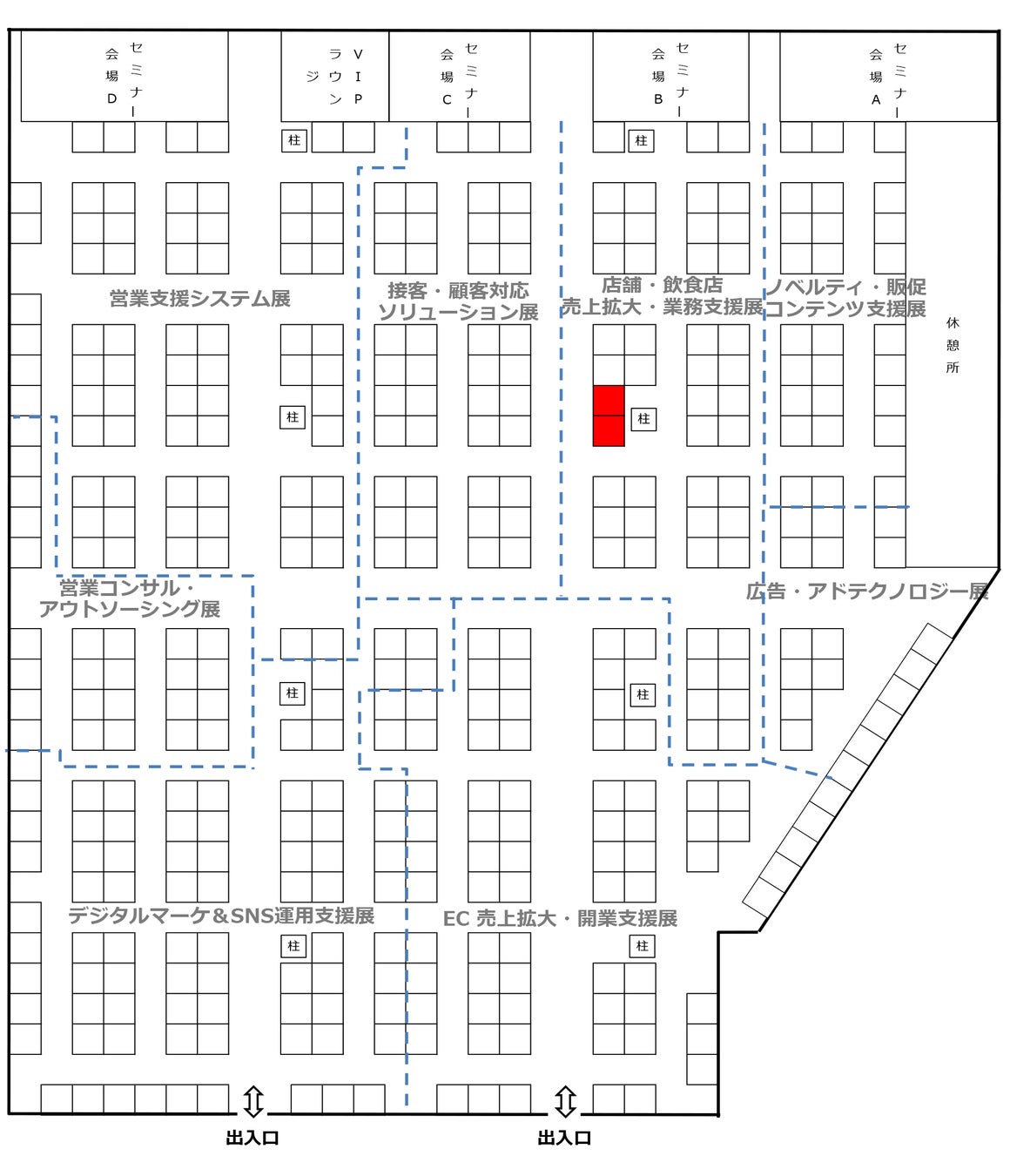 ※下図赤色の小間が出展場所になります。