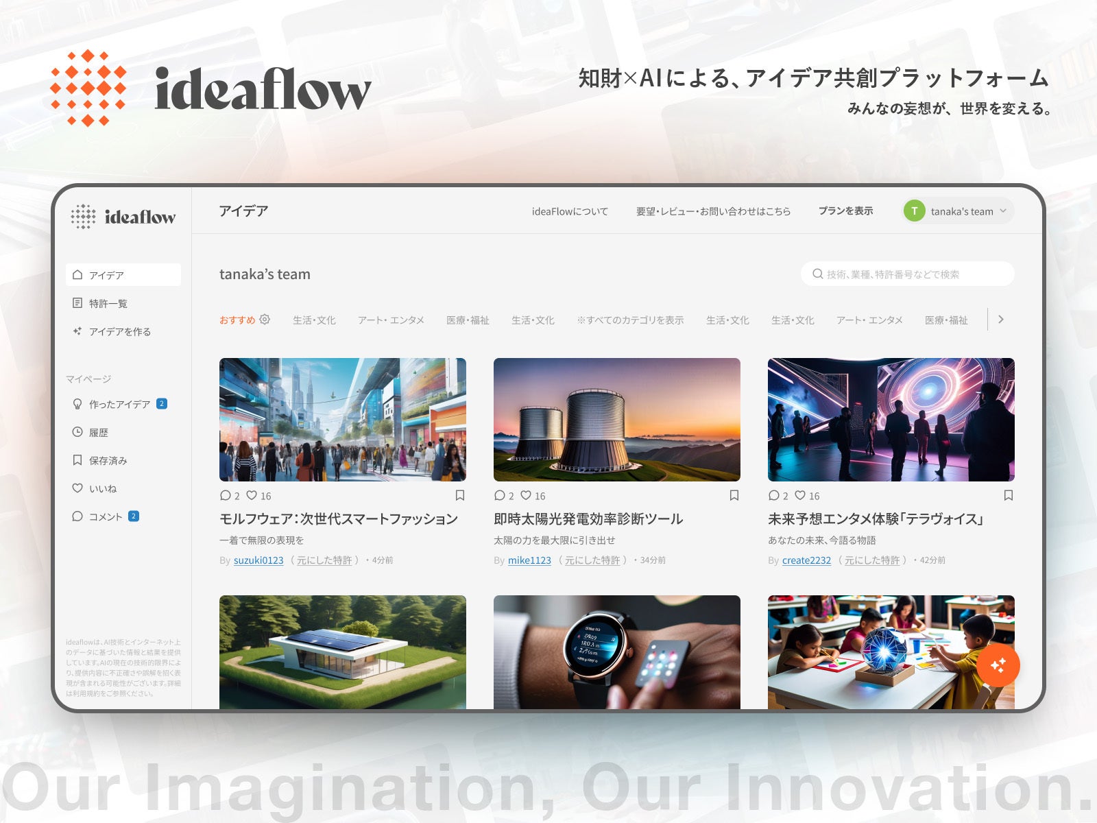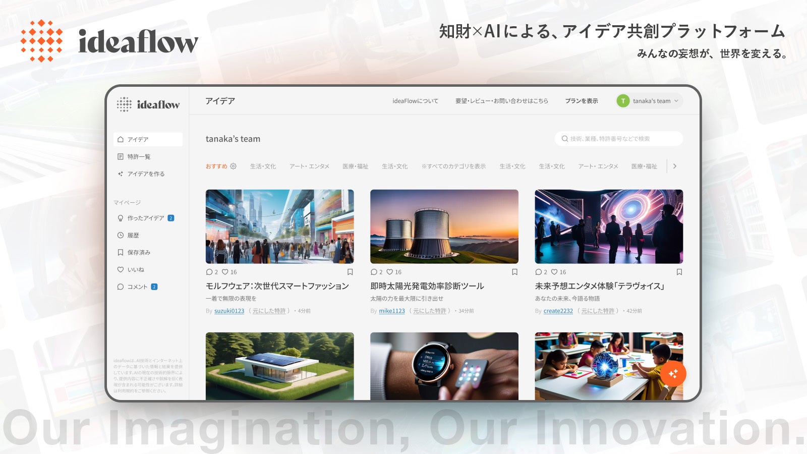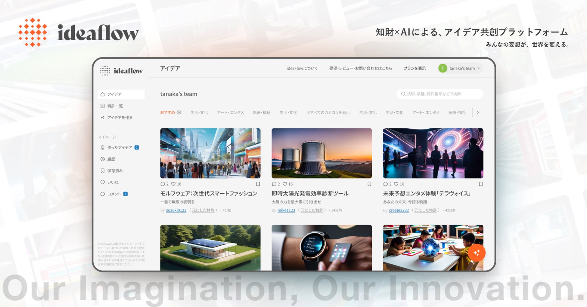 株式会社知財図鑑は、AIを活用した新規事業のアイデア共創プラットフォーム「ideaflow(アイデアフロー)」を2024年6月25日に発表しました。特許情報から未来型の事業アイデアを創出するこのサービスは、特許を保有する企業や大学を対象に機能を限定したベータ版で提供を開始します。2024年度下期には、オープンなWebサービスとして提供範囲を拡大させる予定です。