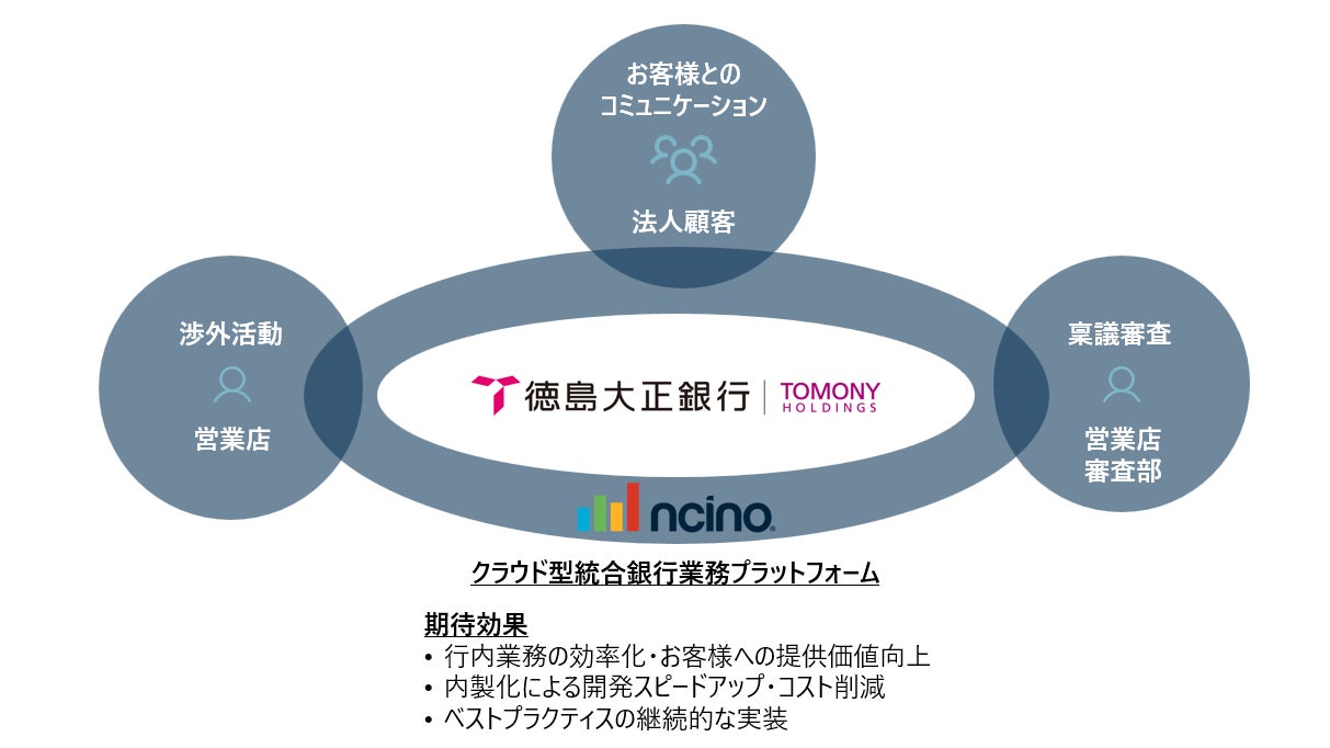 クラウドバンキングと金融サービスデジタルトランスフォーメーションの先駆者であるnCino株式会社(日本法人:東京都港区、代表取締役社長:野村逸紀、以下:nCino)は本日、トモニホールディングスグループの株式会社徳島大正銀行(本店:徳島県徳島市、代表取締役頭取:板東 豊彦、以下 徳島大正銀行)が、強みとする対面営業力の更なる強化と職員のエンゲージメント向上を目的に、nCinoのクラウド型銀行業務統合プラットフォームを採用したことを発表しました。
