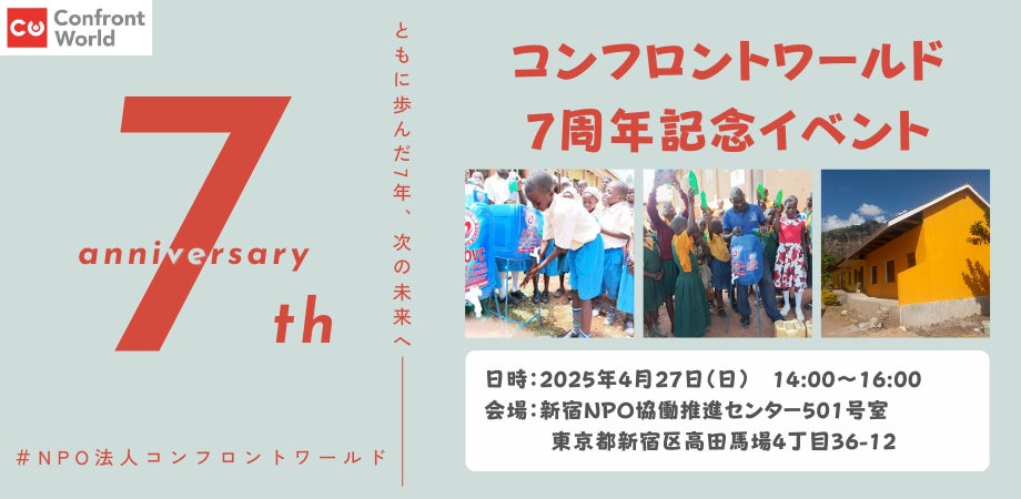 特定非営利活動法人コンフロントワールド(所在地:東京都、代表理事:荒井昭則)は、設立7周年を記念し、7周年記念イベントを4月27日(日)に開催いたします。