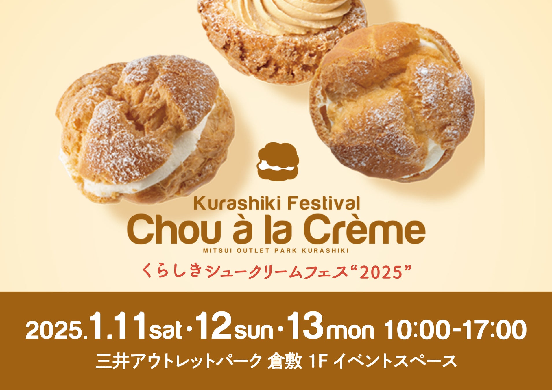 今年で4回目の開催となる「くらしきシュークリームフェス2025」を開催いたします。今年は各地から20の人気店舗が集まり、多種多様なシュークリームが楽しめる3日間をお届けします。