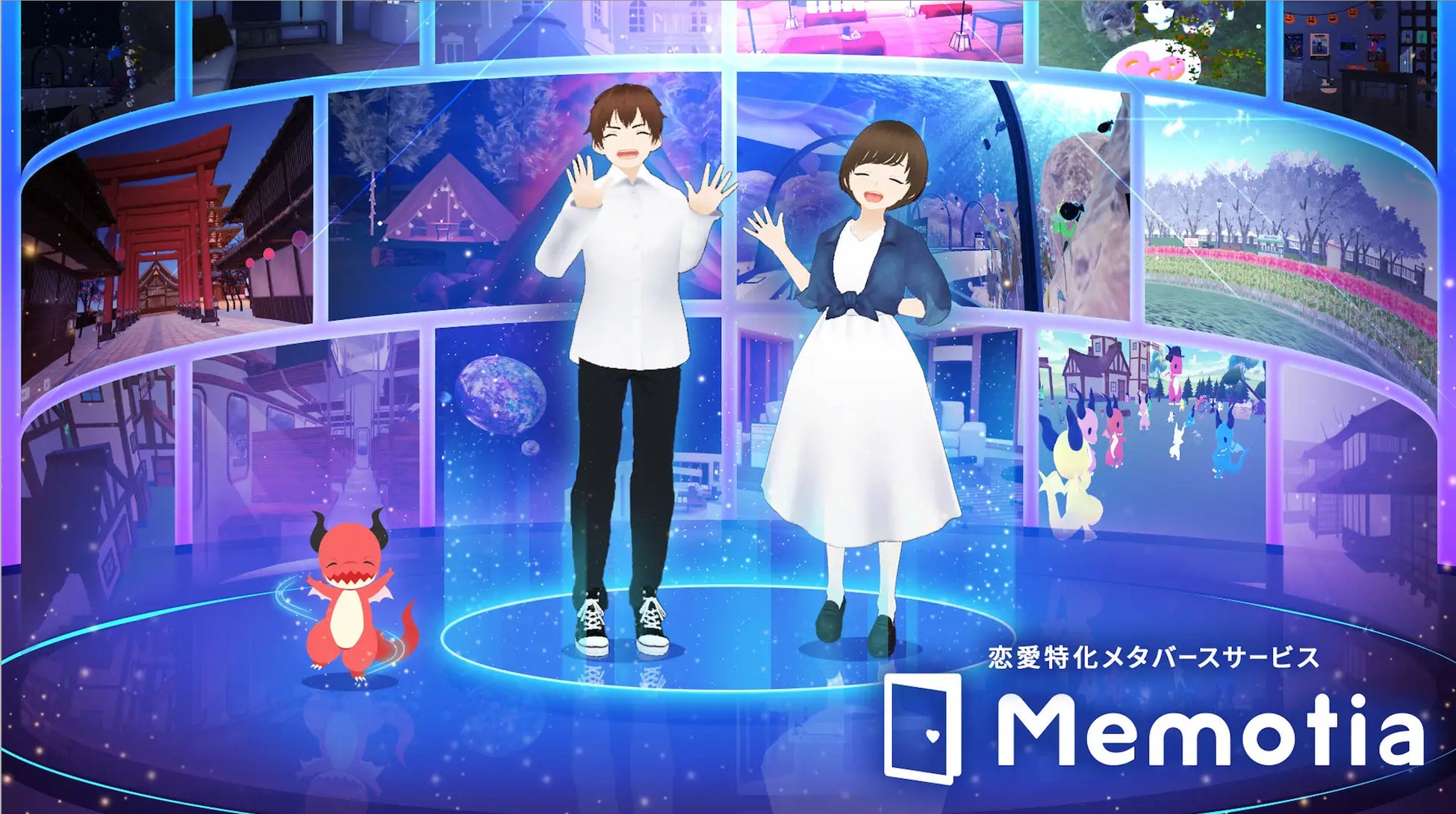 Memotiaは、メタバースを活用したマッチングアプリです。バーチャル上でアバターの姿を活用し会話をすることで、相手の外見やスペックに左右されずに、内面や相性を重視した恋愛が可能です。また、どこからでも参加できる気軽さと、仮想空間ゆえの安心・安全性、リアルでは体験できないようなバーチャルならではのデート体験を通じて、これまでにない新しい形の恋愛を提供しています。