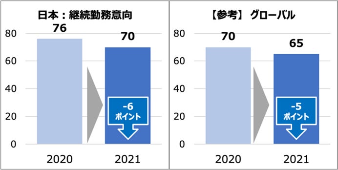 3.日本でも「継続勤務意向」は低下傾向 図3:継続勤務意向の変化