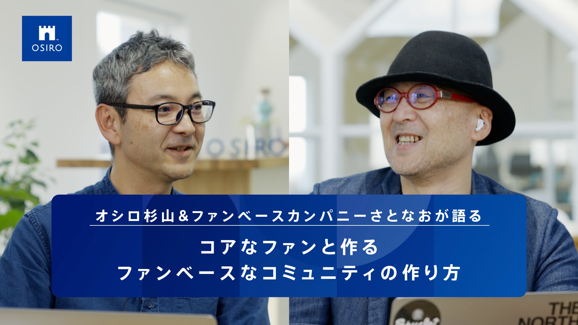 「コミュニティ疲れをしないコアファンとの長期的な関係づくり」について語る。佐藤 尚之(さとなお)氏とオシロ代表杉山によるウェビナーのアーカイブ動画を1月18日(木)より公開。