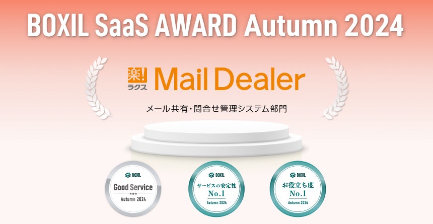 ラクスが提供する「メールディーラー」が、「BOXIL SaaS AWARD Autumn 2024」メール共有・問合せ管理システム部門で「Good Service」ほか2つのNo.1に選出