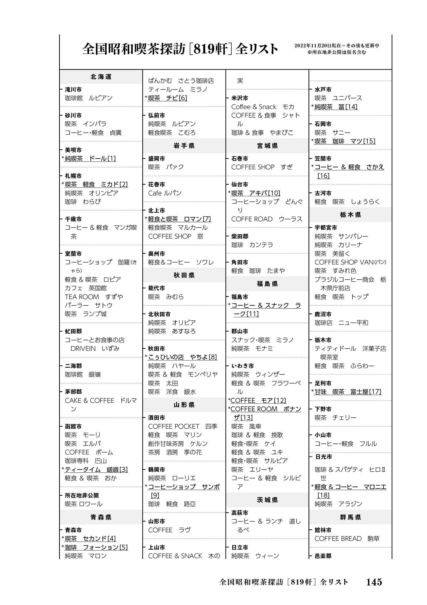 ※詳細な住所の掲載はありません。すでに廃業や取り壊しなどによってなくなっている昭和喫茶も多数あります。