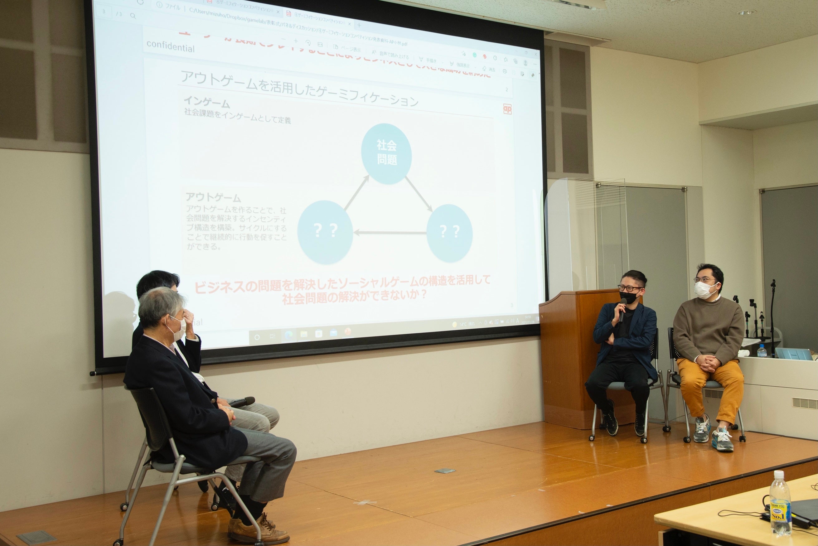 更に、当コンペの審査員が登壇し「ゲーミフィケーションの可能性について」をテーマにしたパネルディスカッションも行われました。