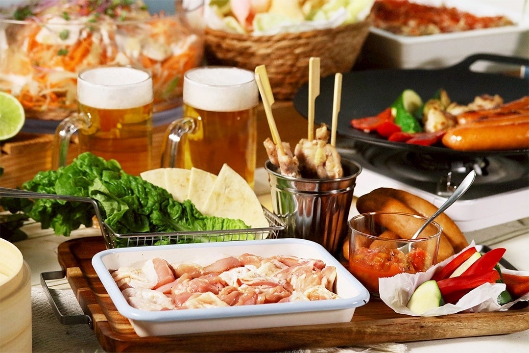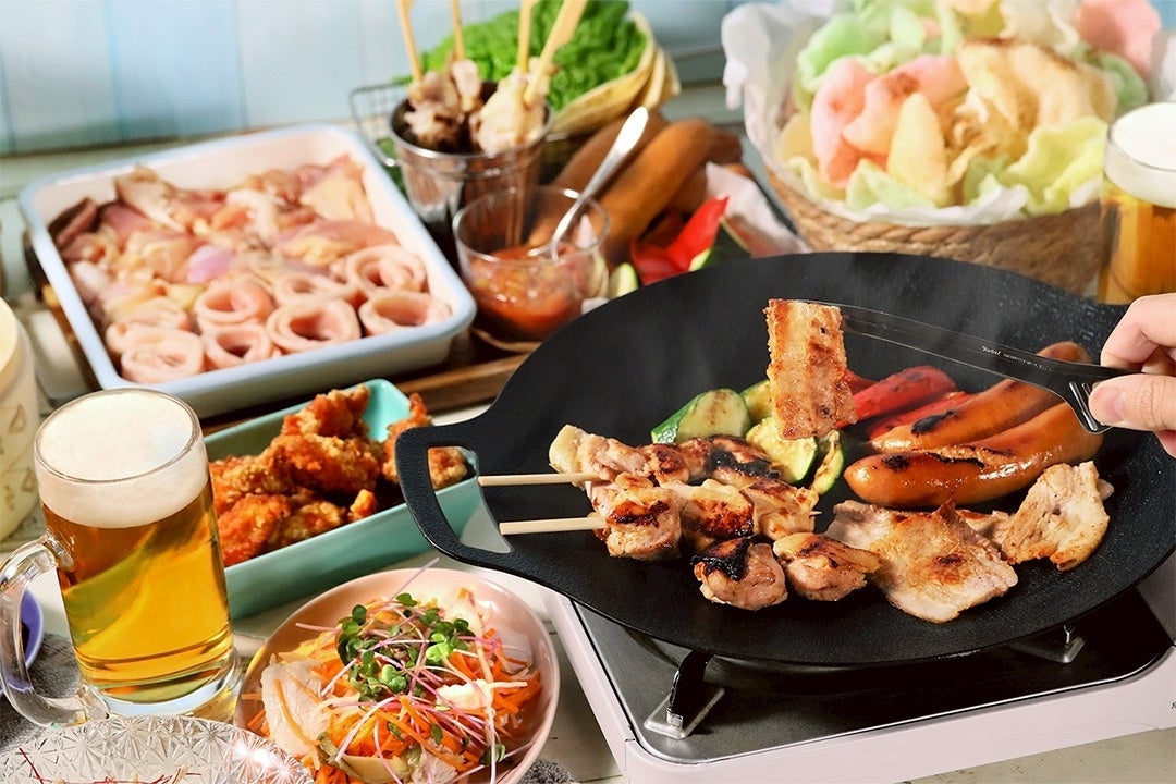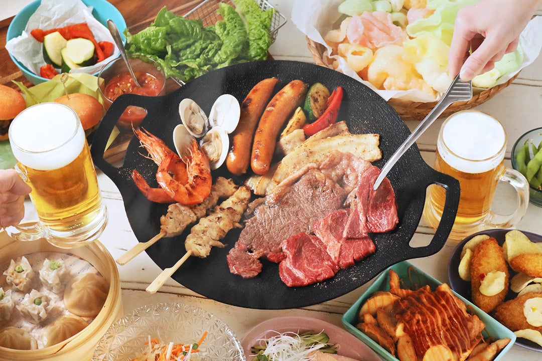 マルチグリドルを使ったセルフ鉄板BBQスタイルで楽しめる都市型BBQビアガーデン それぞれのお席で自由に焼き上げ、熱々の出来立てをお楽しみいただけます。