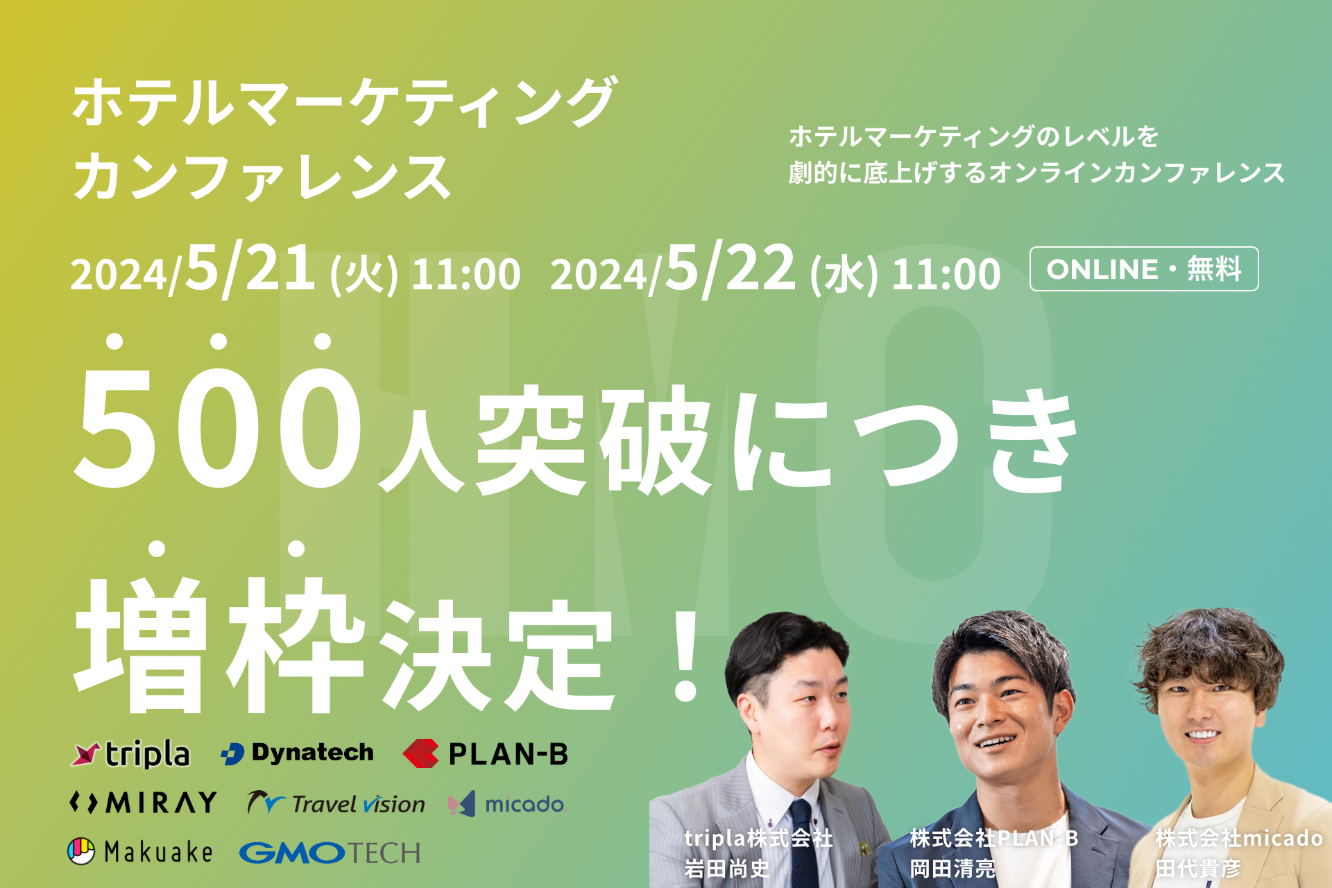 【500施設を突破】5/21〜5/22開催!ホテル・旅館業界向けのカンファレンスの増枠を決定